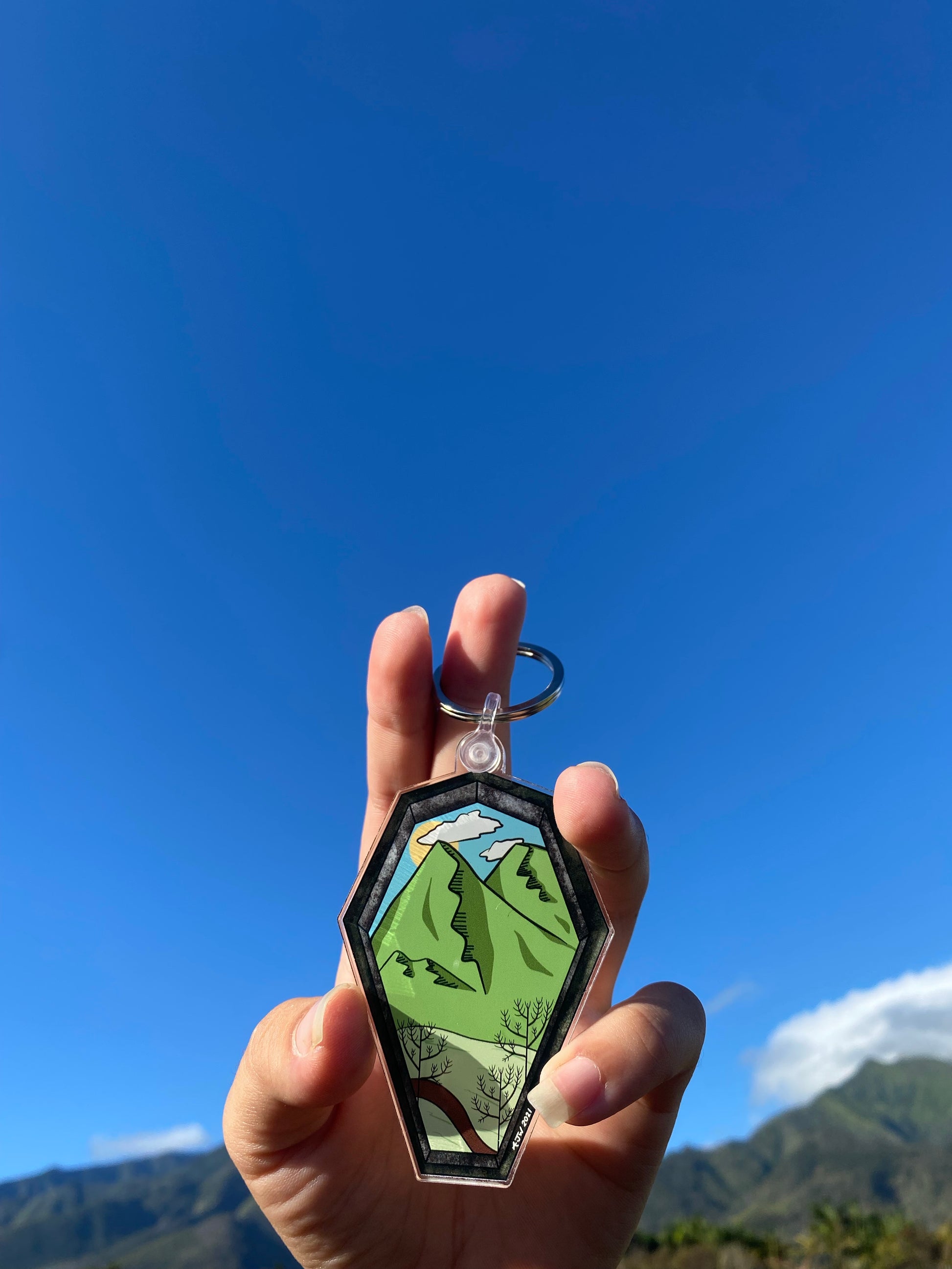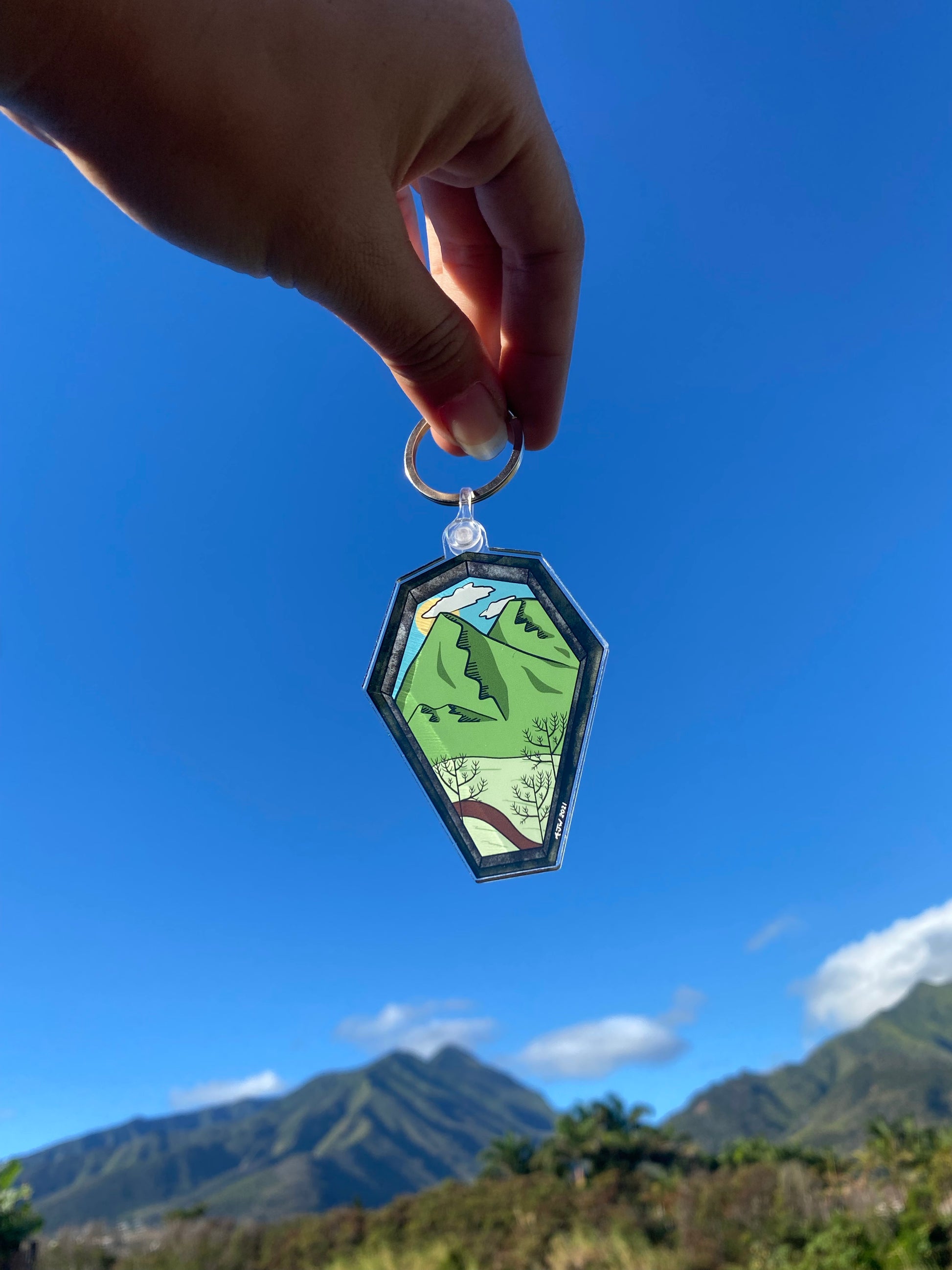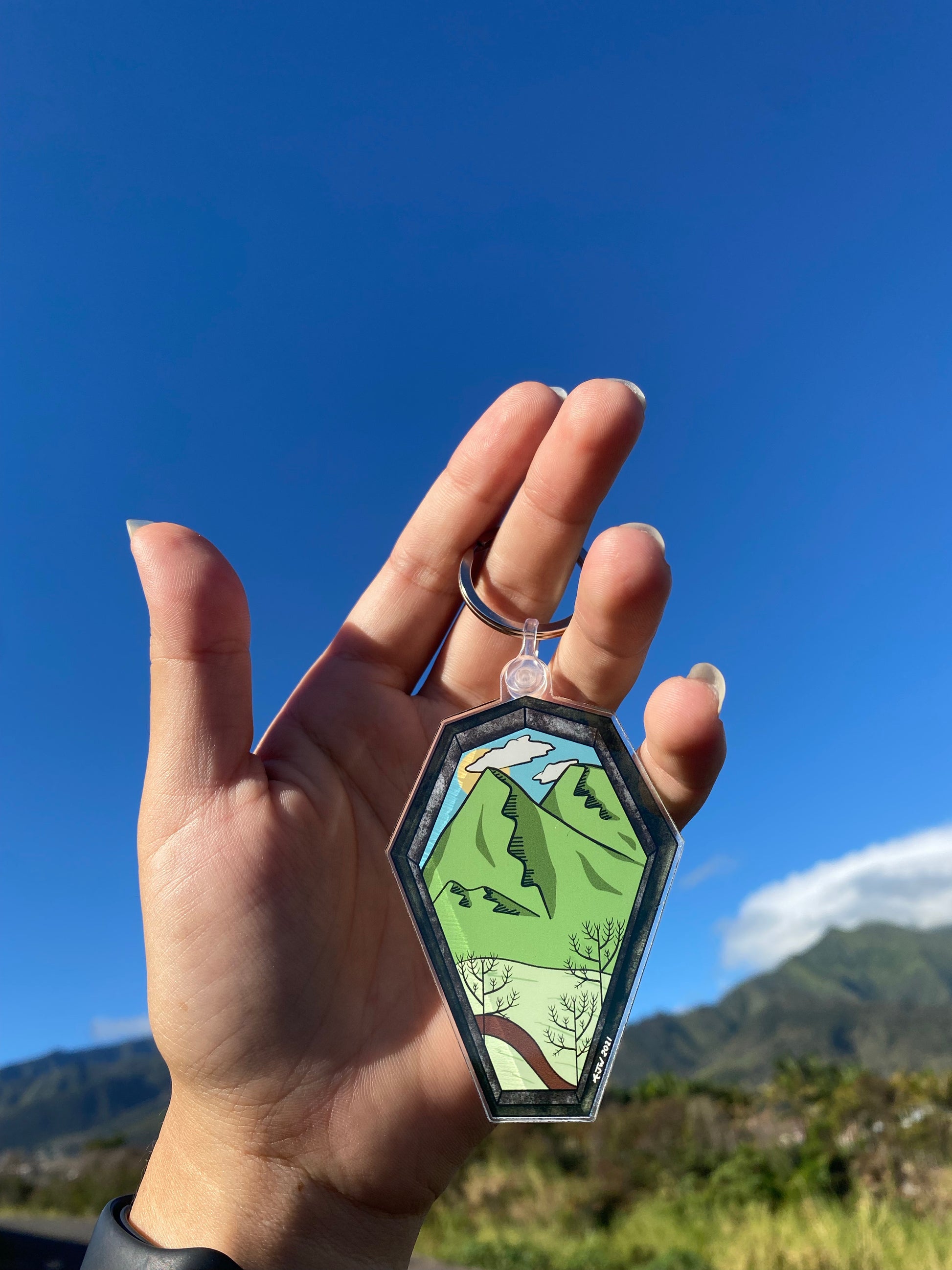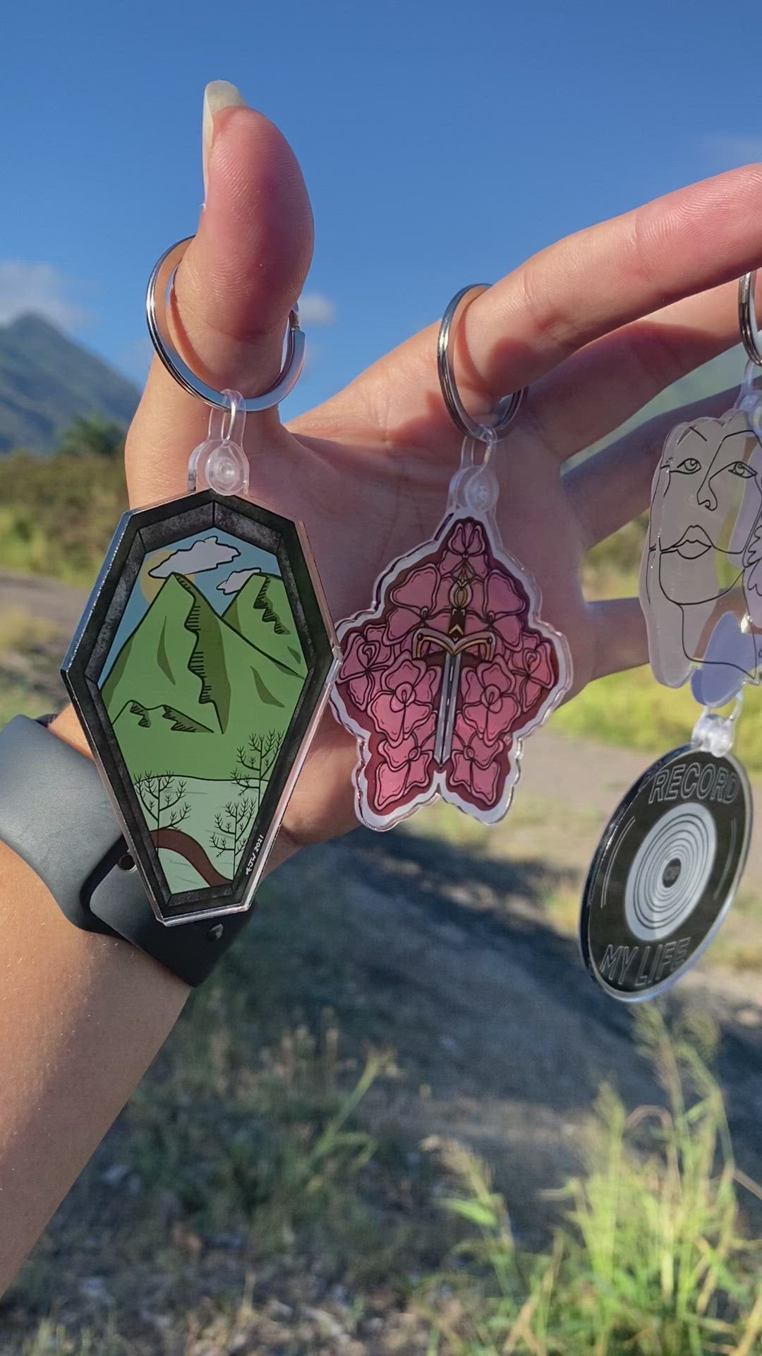 Die-Cut Acrylic Key Chain: 2.5" x 2.62" dimensions