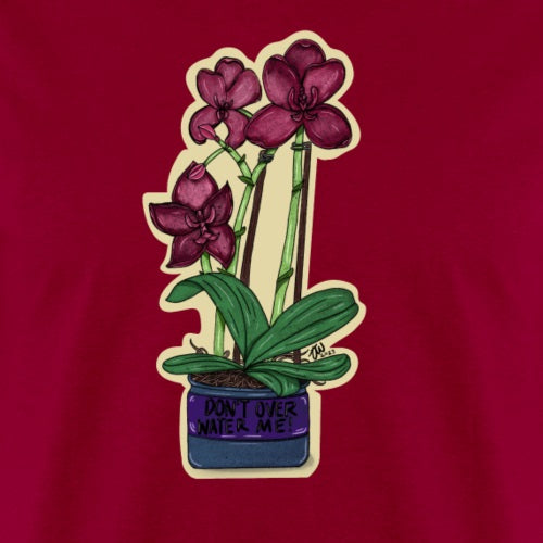 Office Plant “Don’t over Water Me” Digital Print on a Dark Red Unisex Ultra Cotton Shirt.