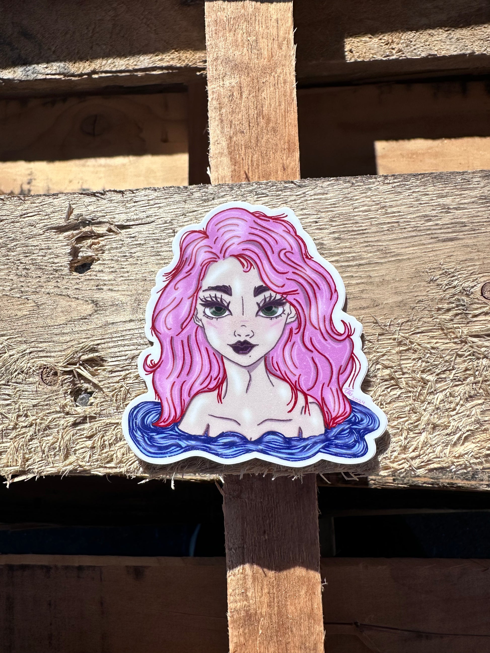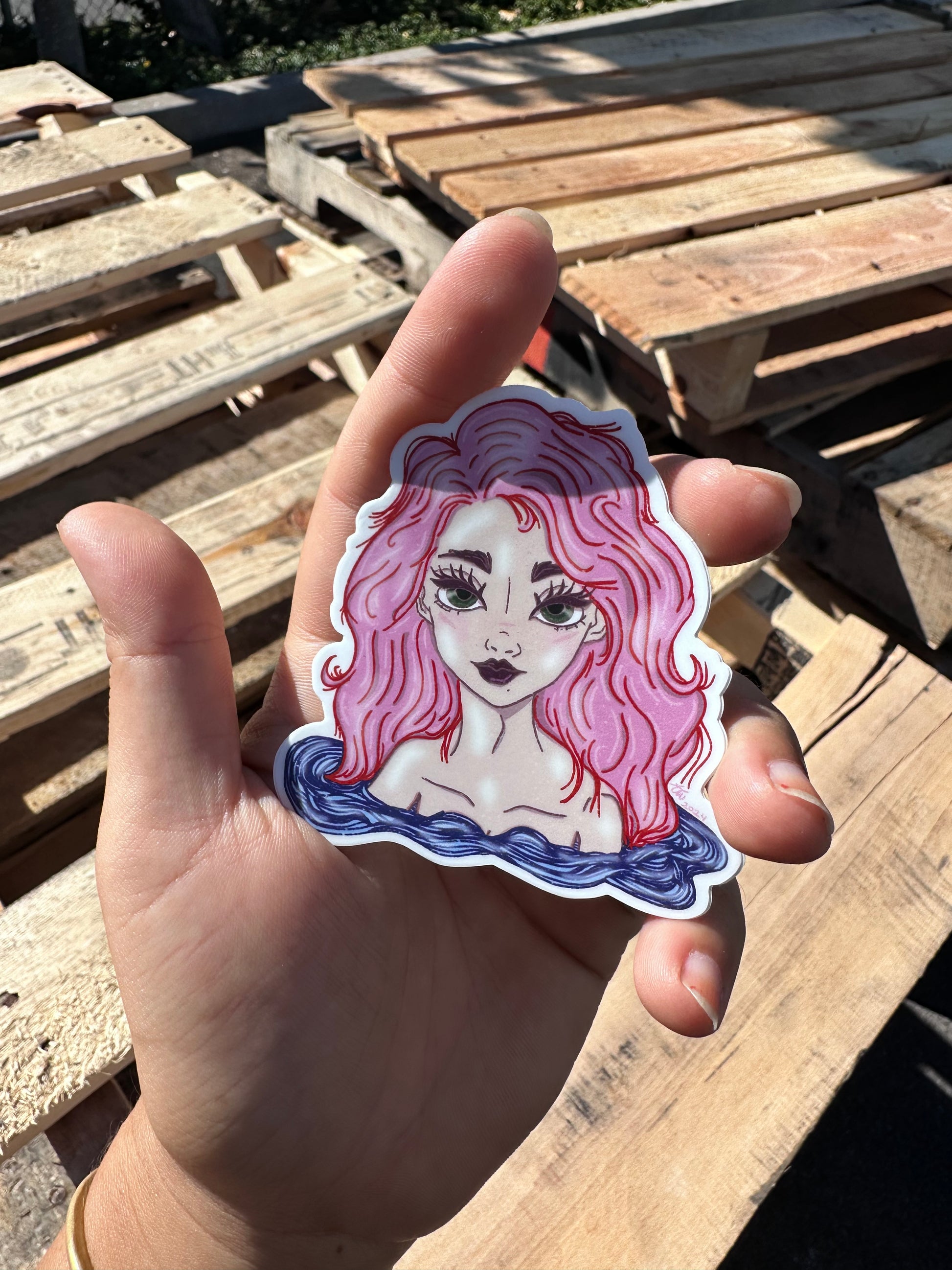 Ever look in the mirror and the reflection is an other vision? Sketched character art of a pretty girl in pink hair emerging out of the water.