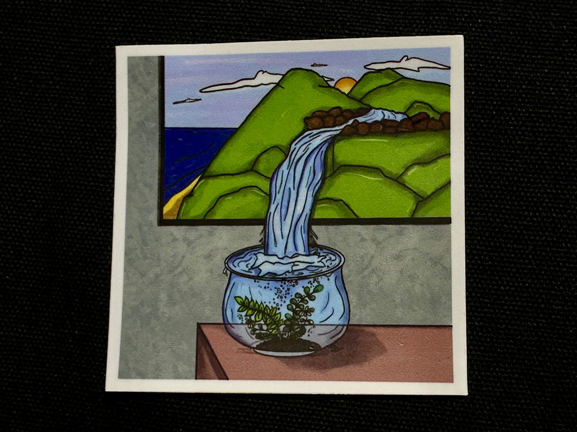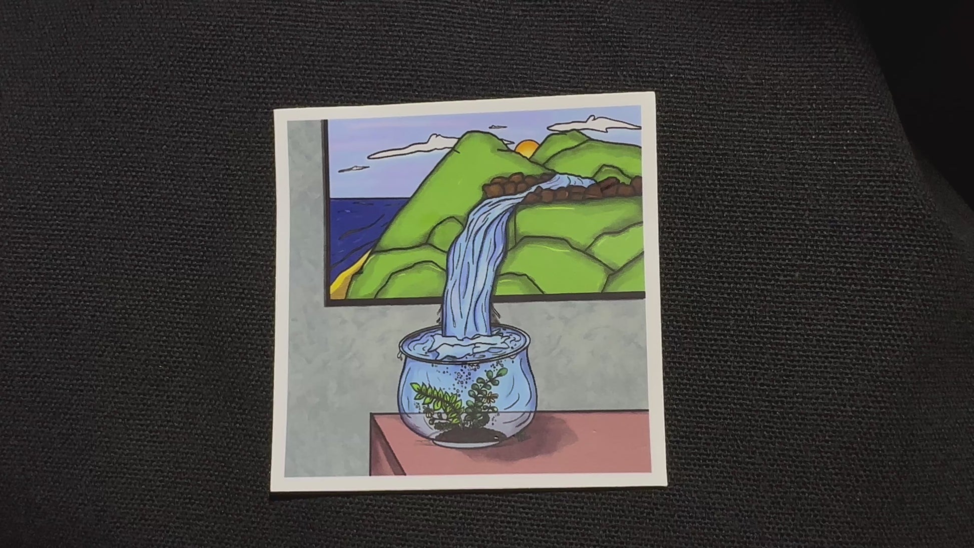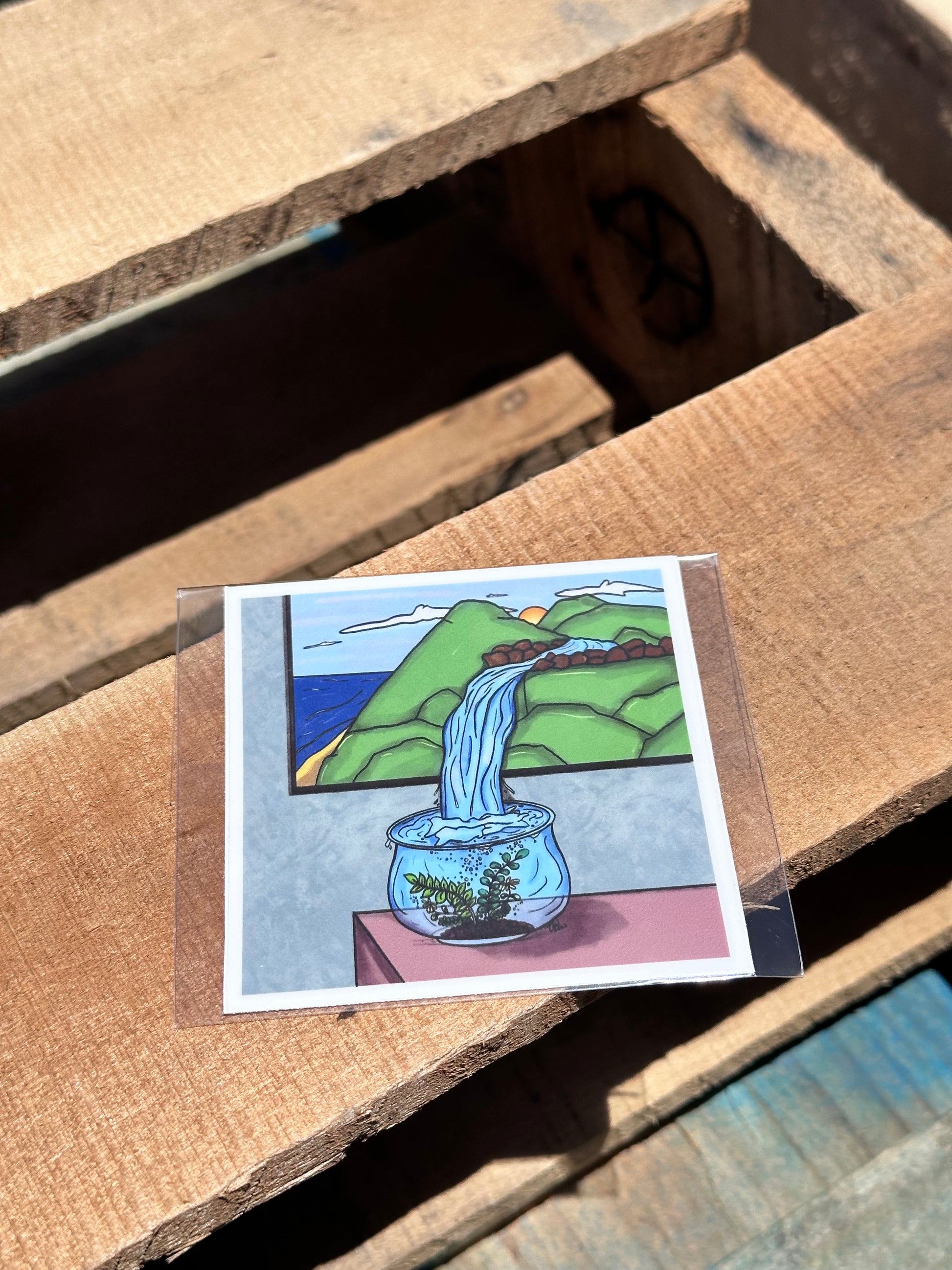 Pouting Water into the Home Square Sticker is is a durable vinyl design pulled from the imagination & love for the waterfalls on Maui.