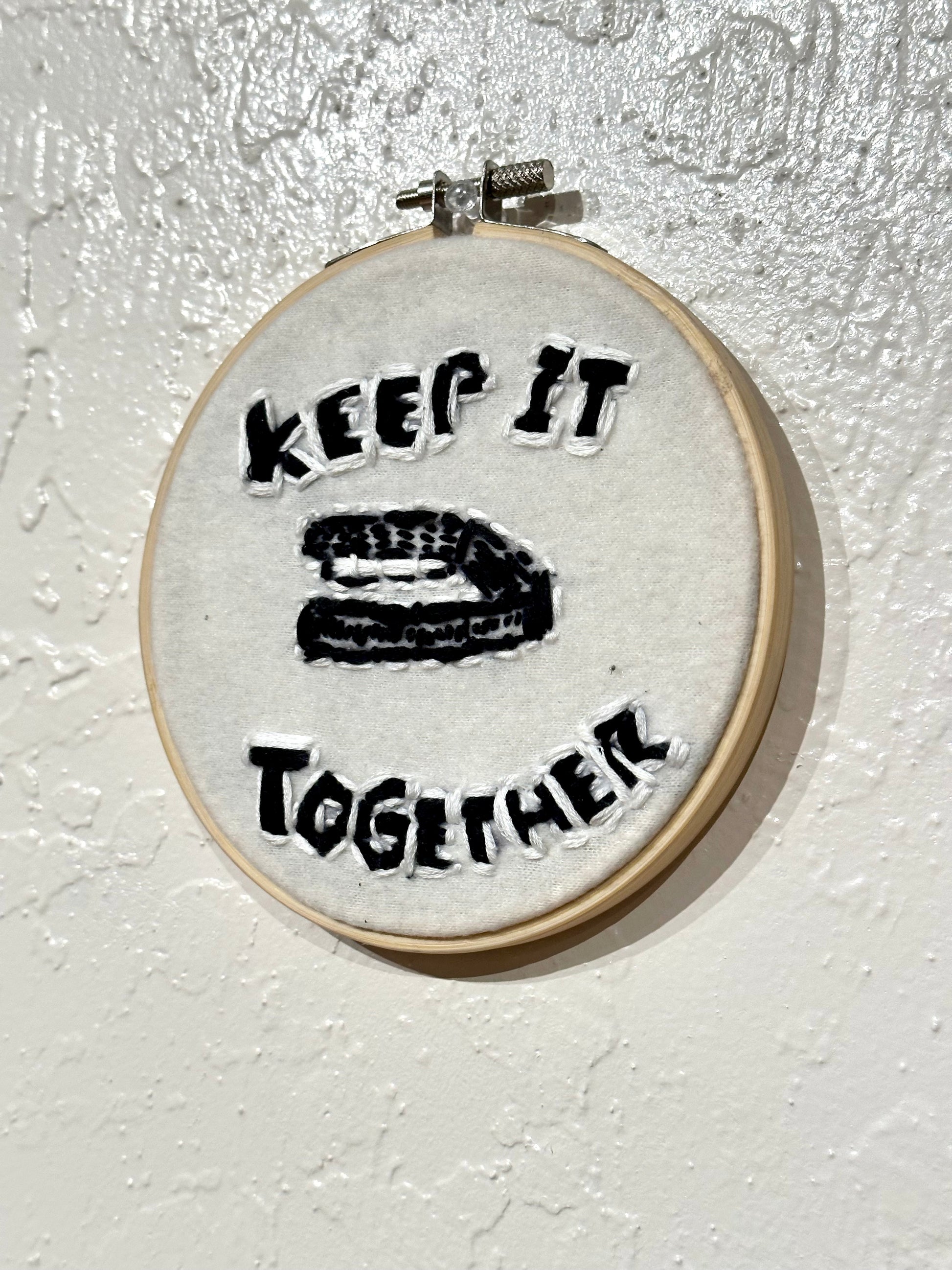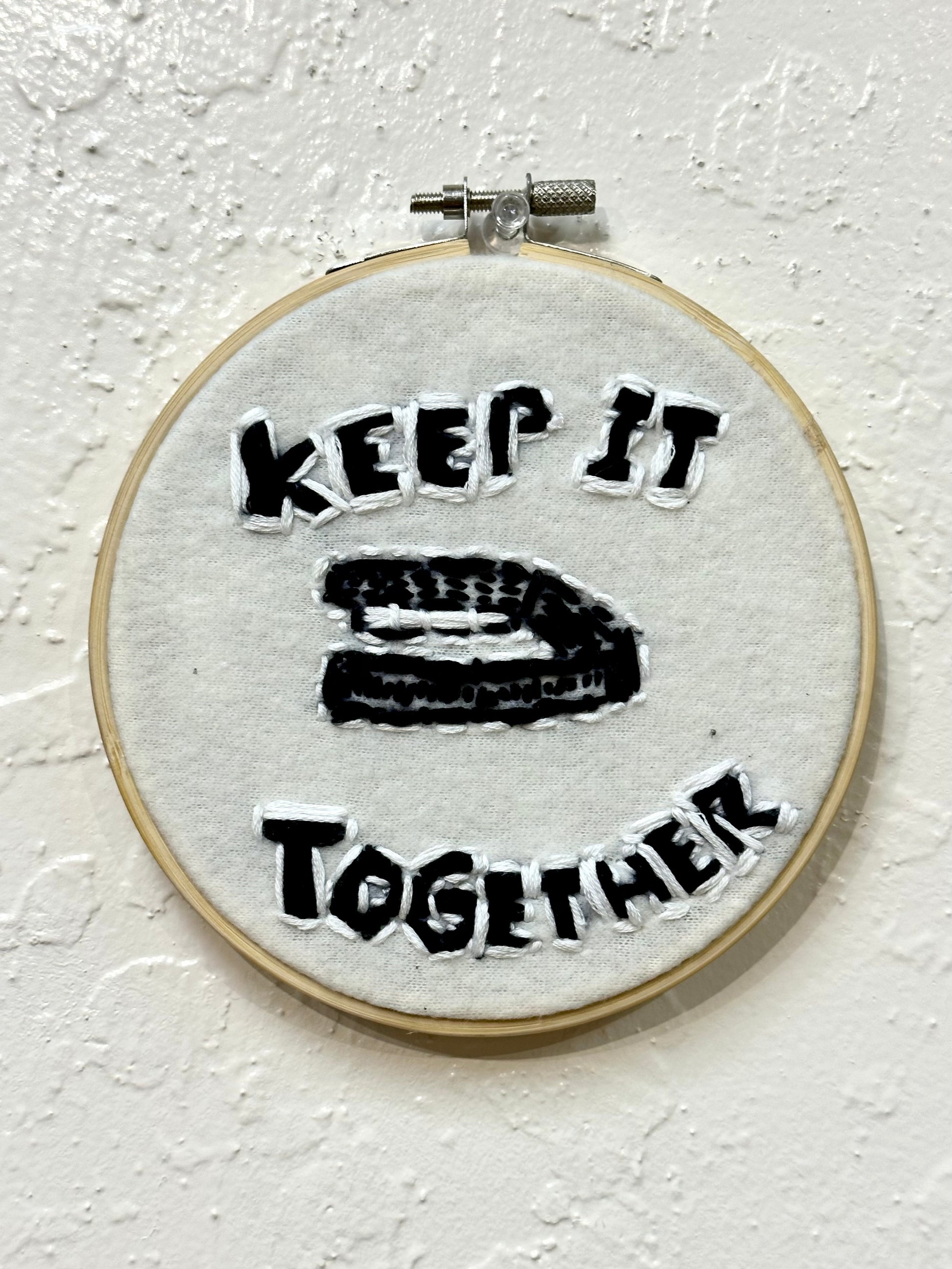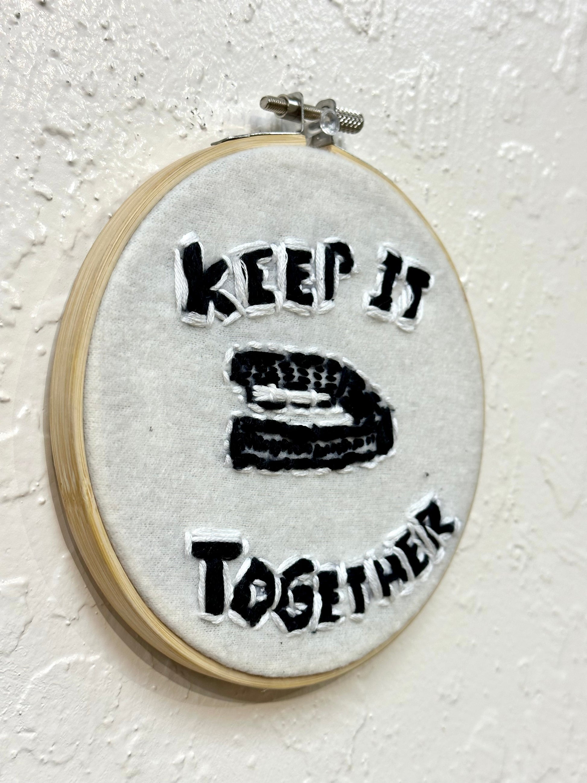 “Keep it Together” Hand Embroidered Hoop Art Canvas
