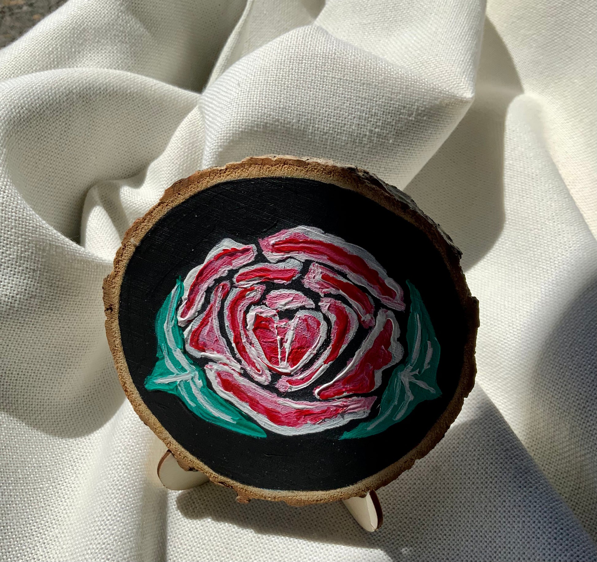 Hand Painted 4x4" Wood Decor Display with Stand.