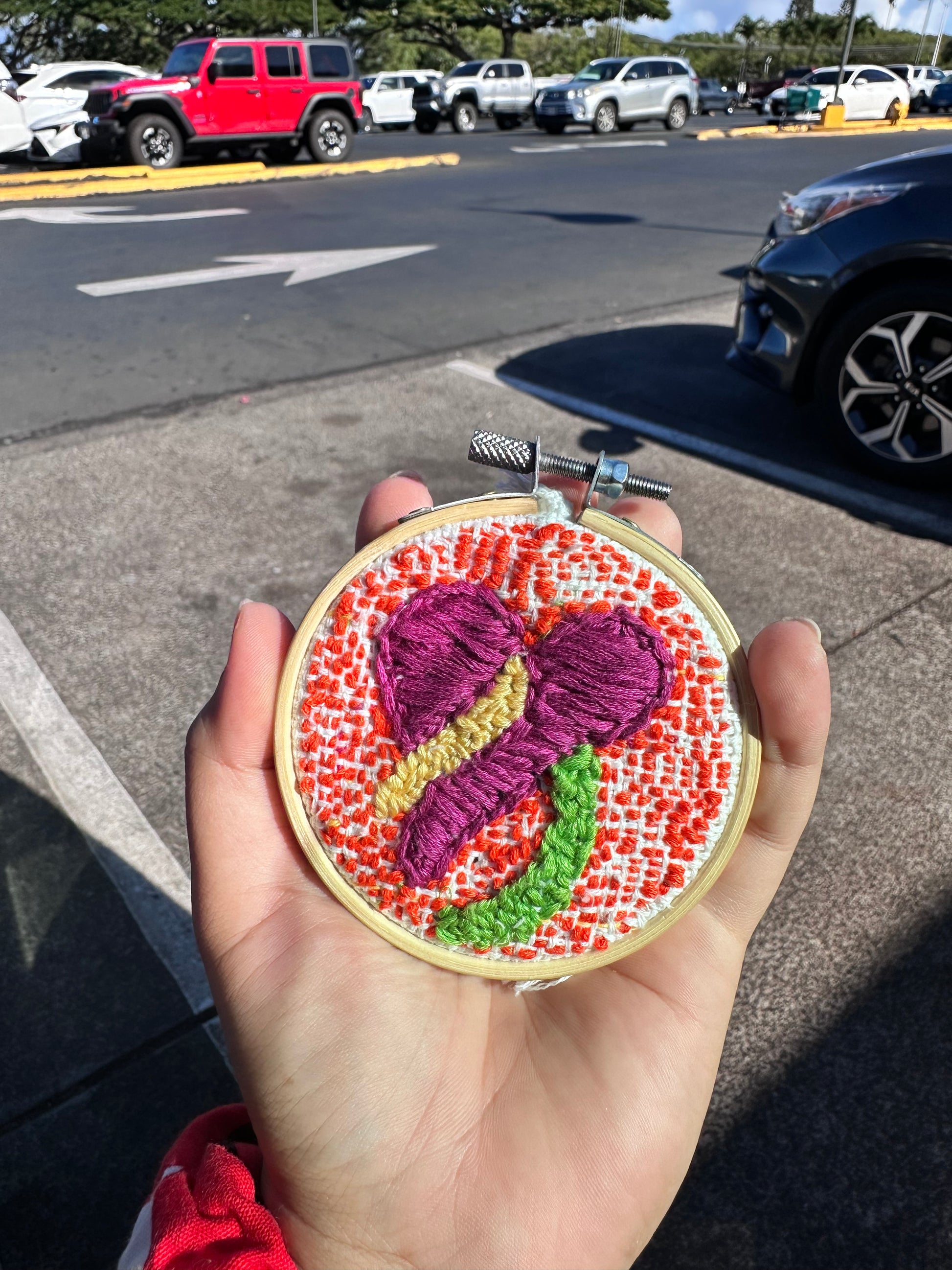 Anthurium Flower Hand-Embroidered Artwork on Hoop Canvas artwork on a 3 in. x 3 in.