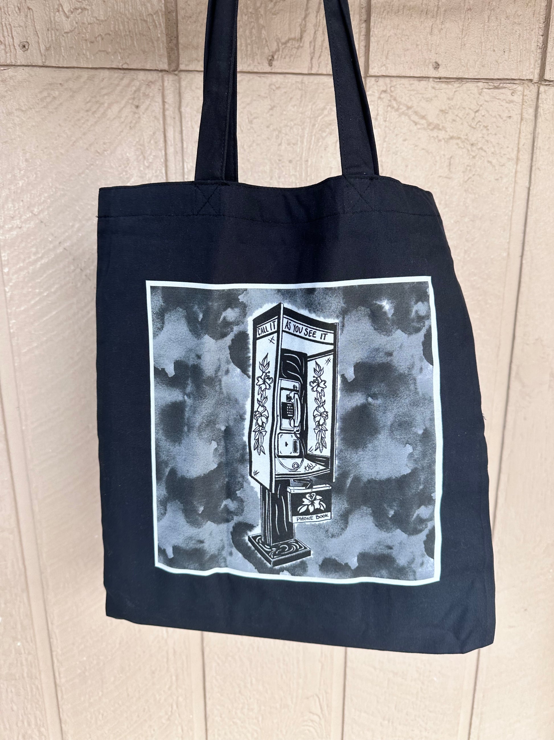 ”Call it as you see it” Vintage Phone Booth Black Tote Bag