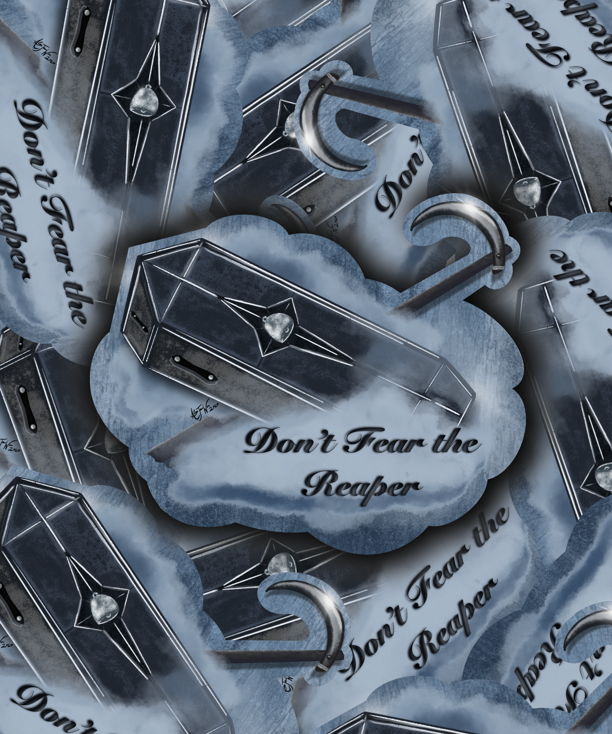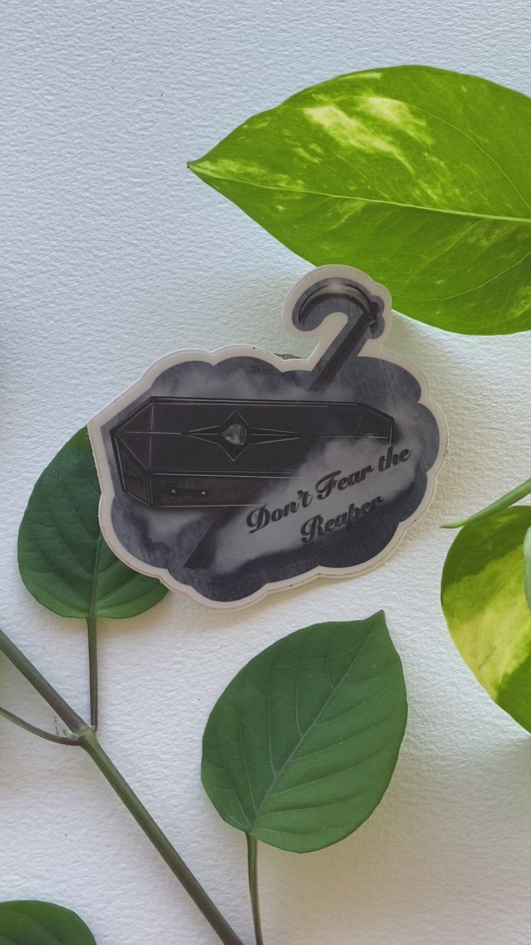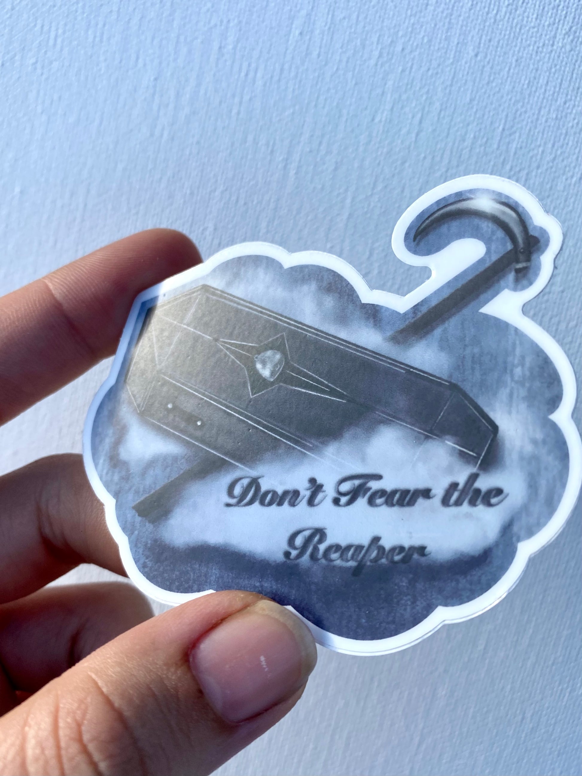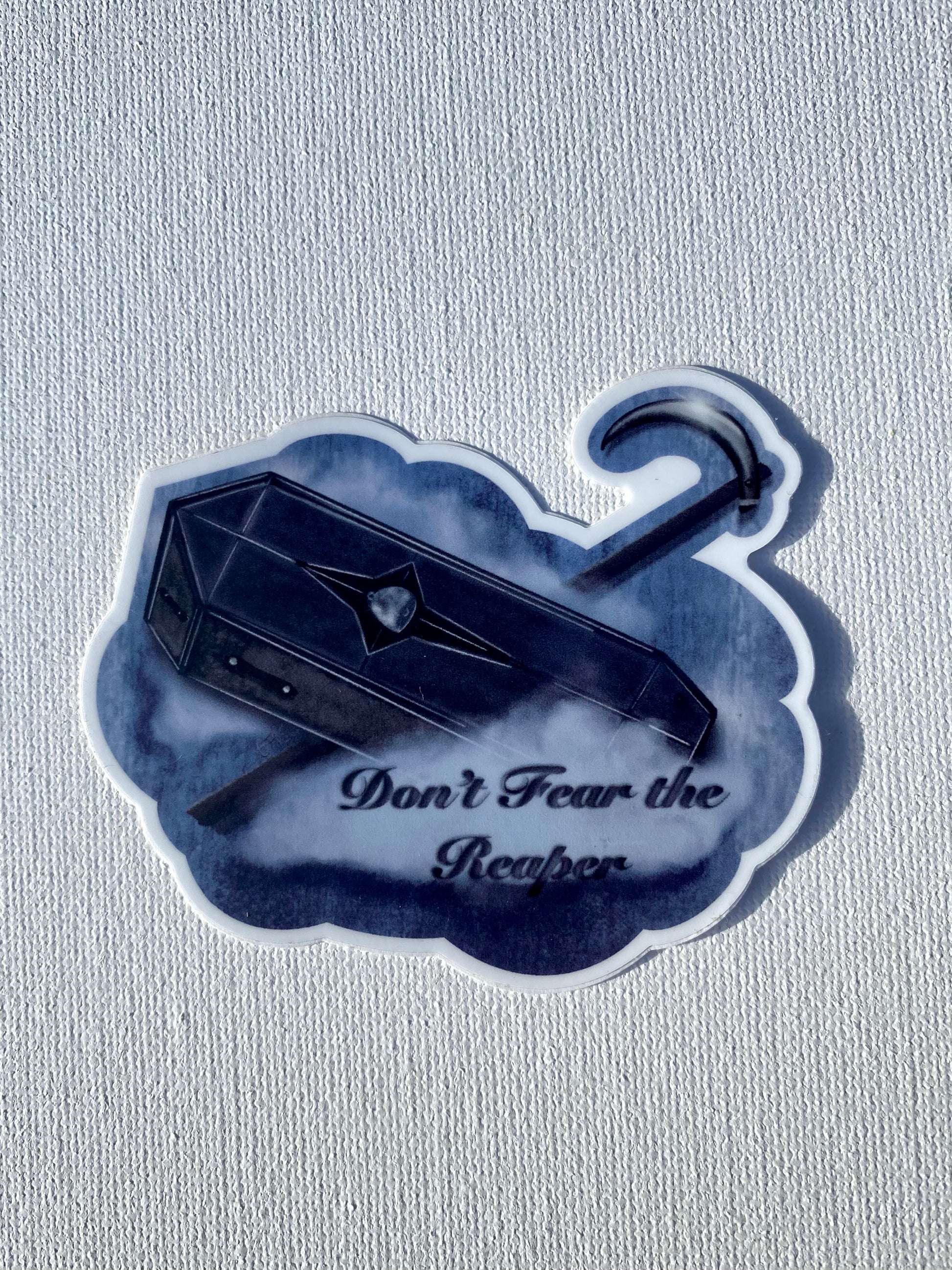 Life Beyond the Grave Vinyl Sticker, Music muse fan art with a coffin & reaper staff