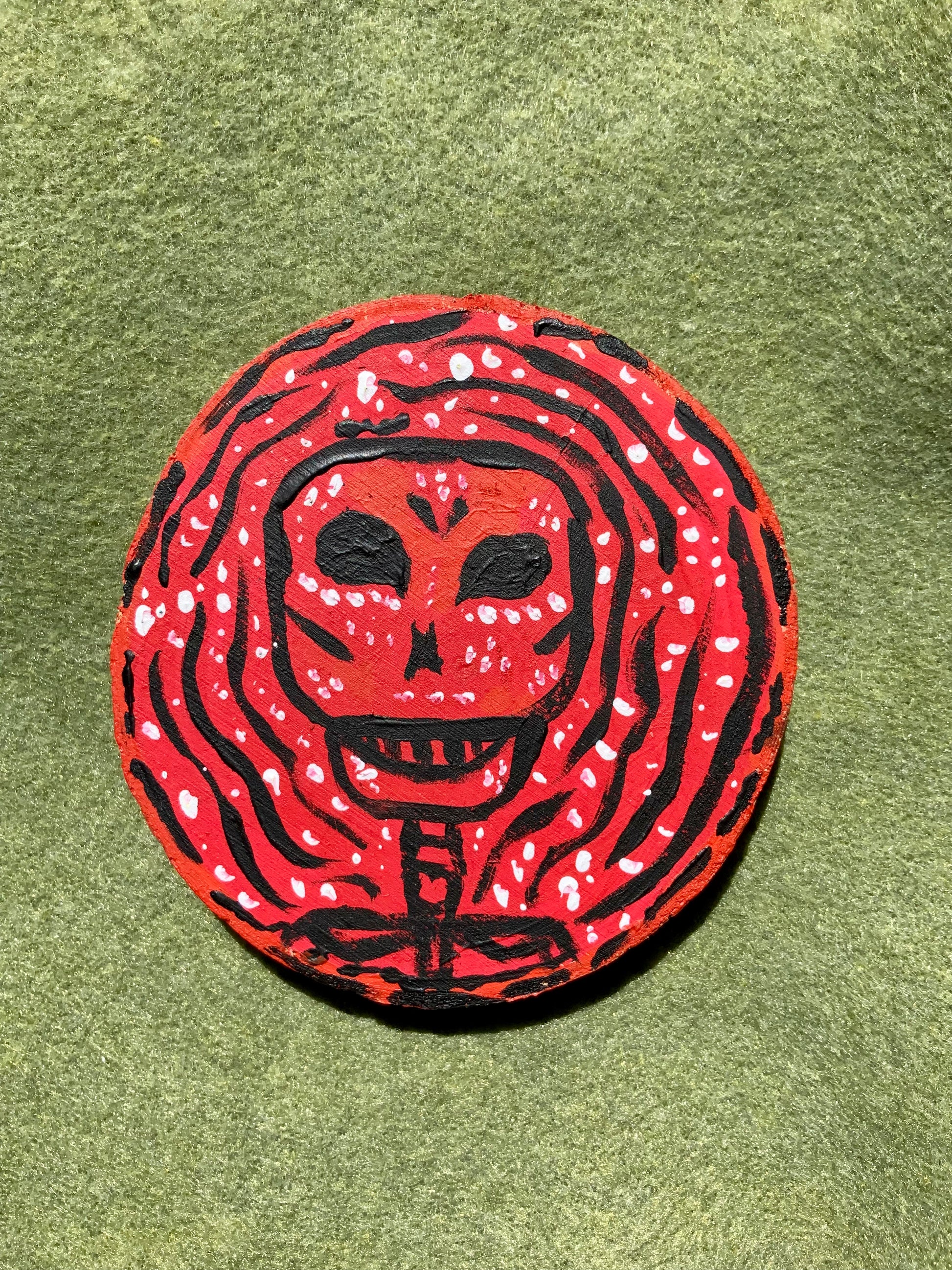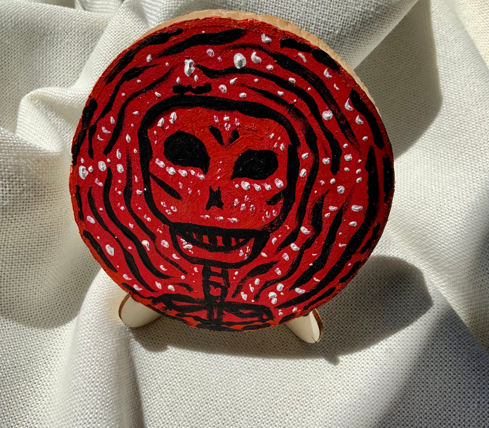 Red Skeleton Wood Painting Hand Painted 4x4" Wood Decor Display by Alani