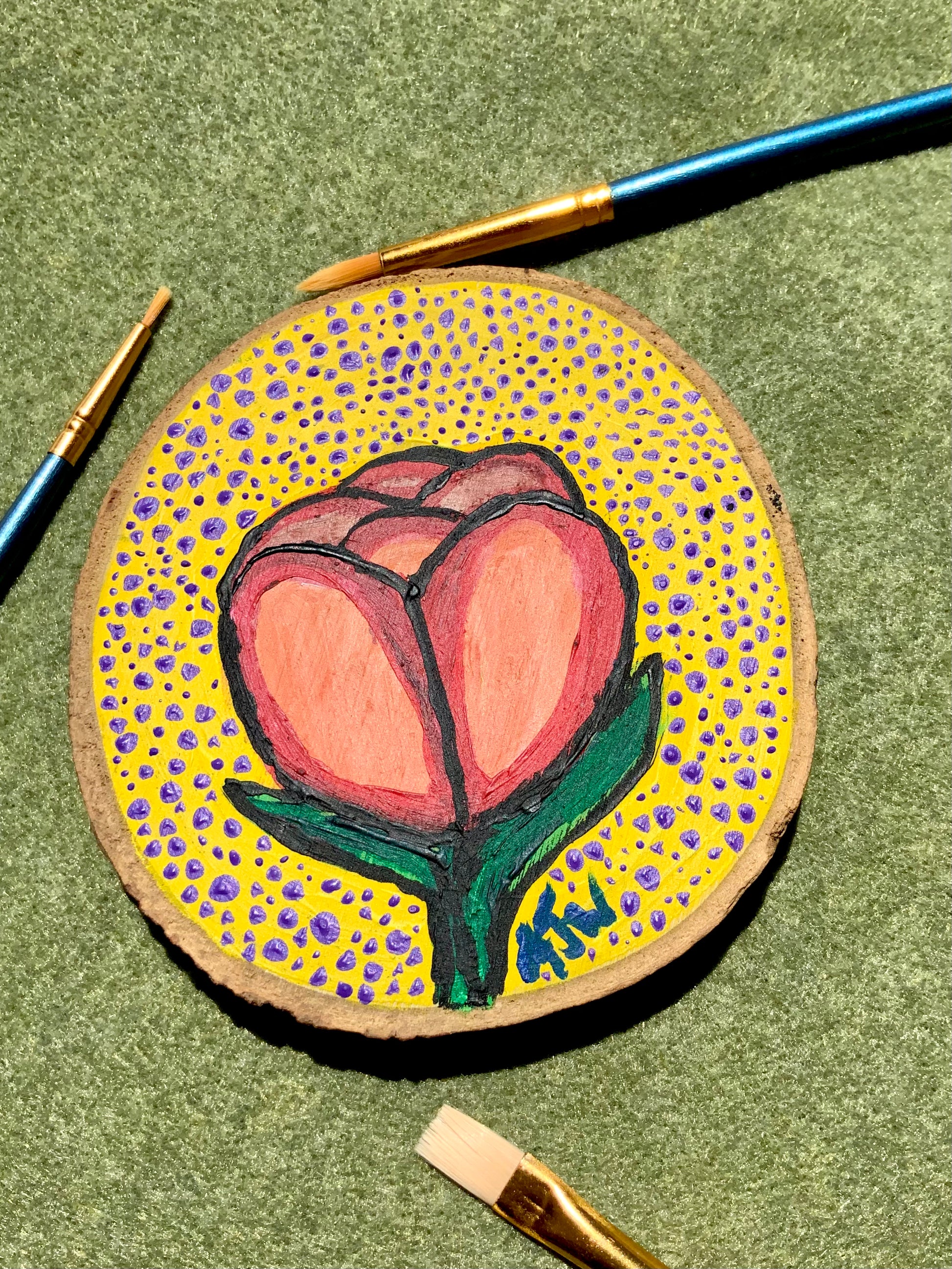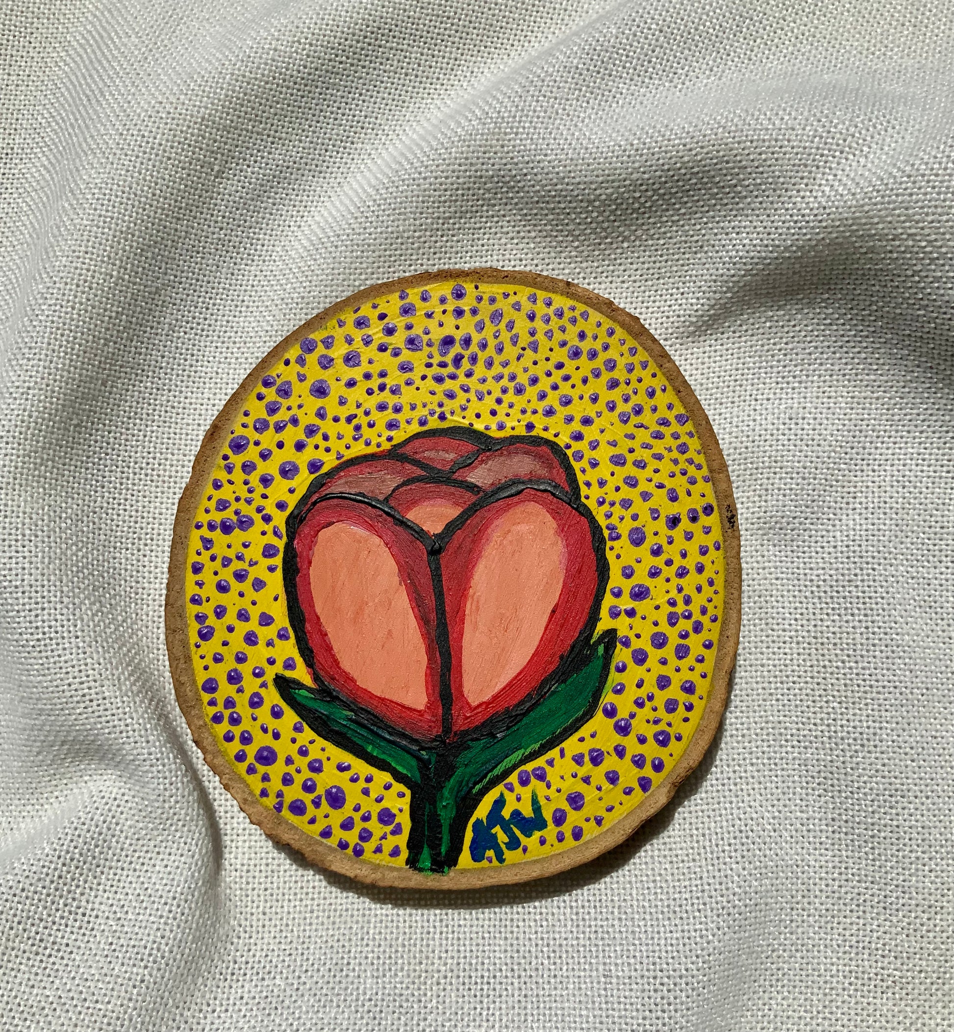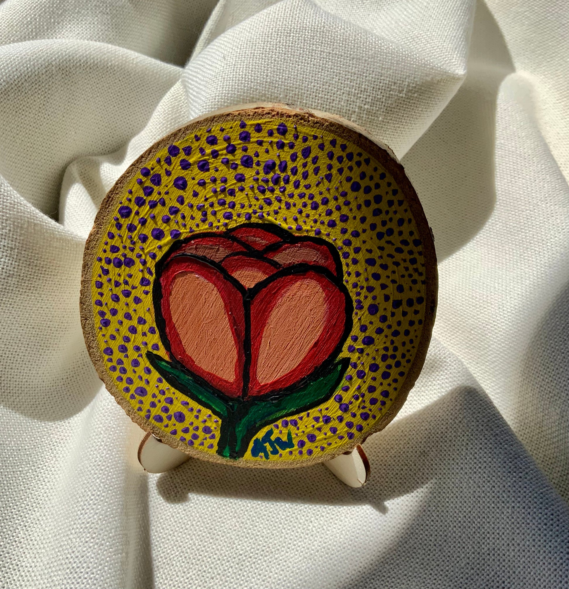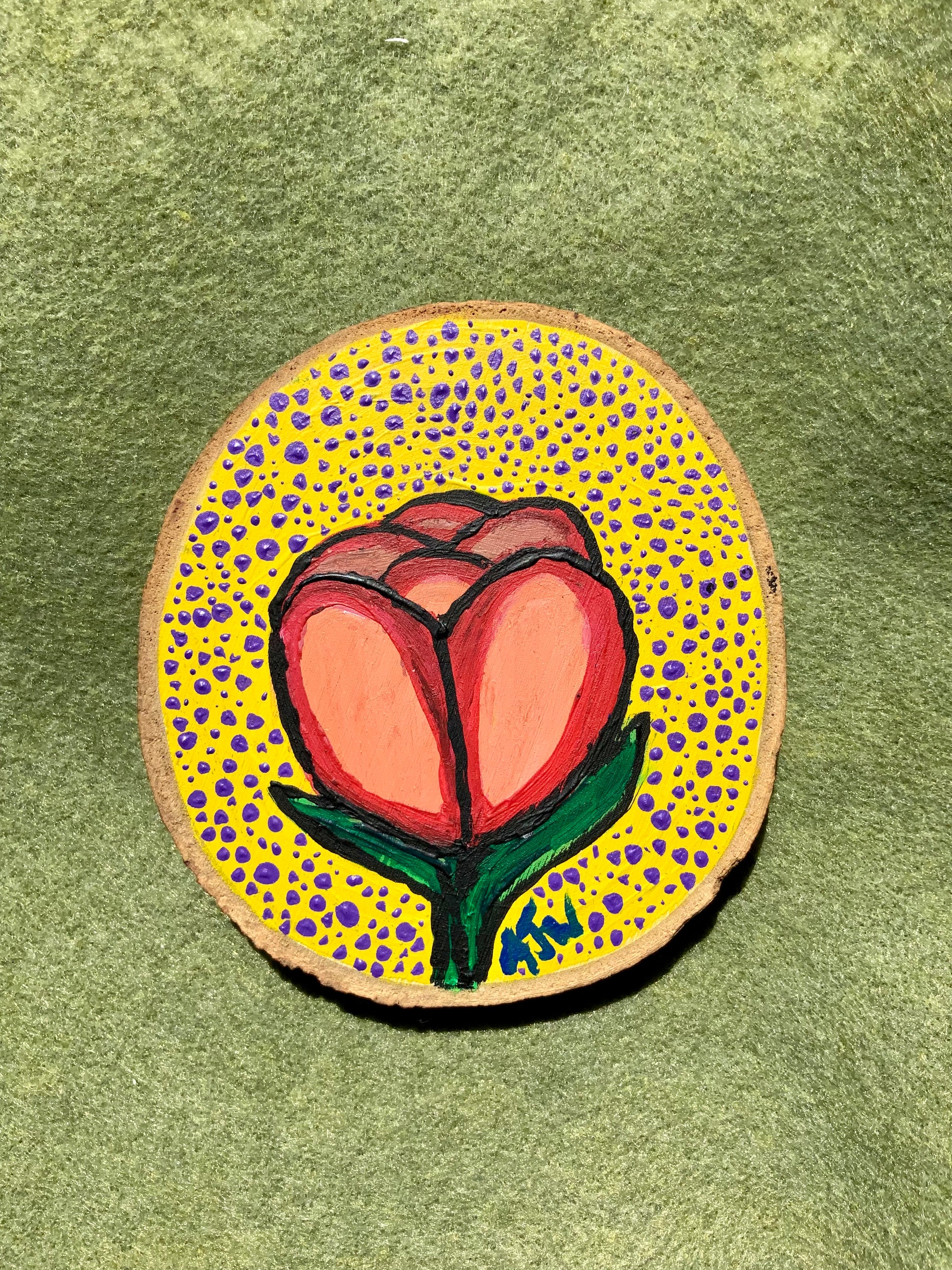 The Simple Tulip Wood Painting is Acrylic Hand Painted 4x4" Wood Decor by Alani