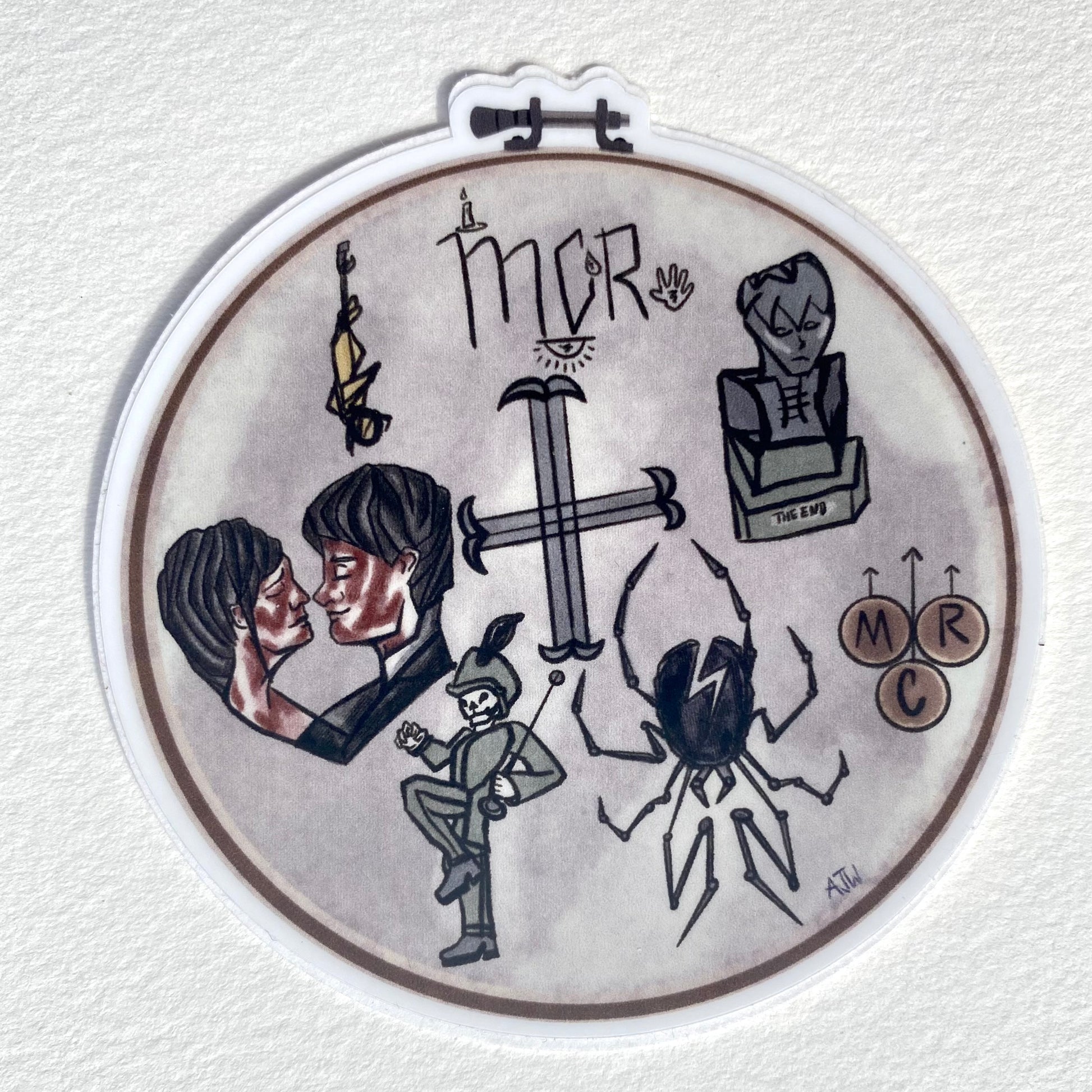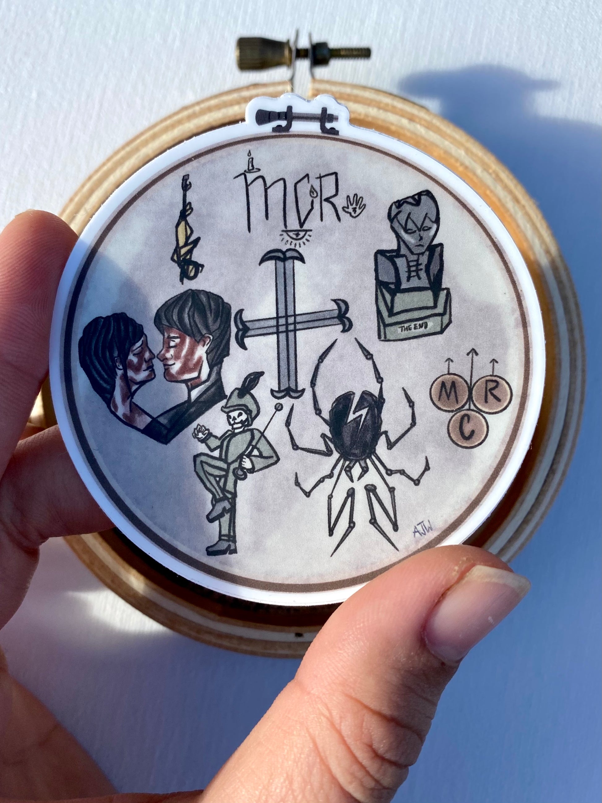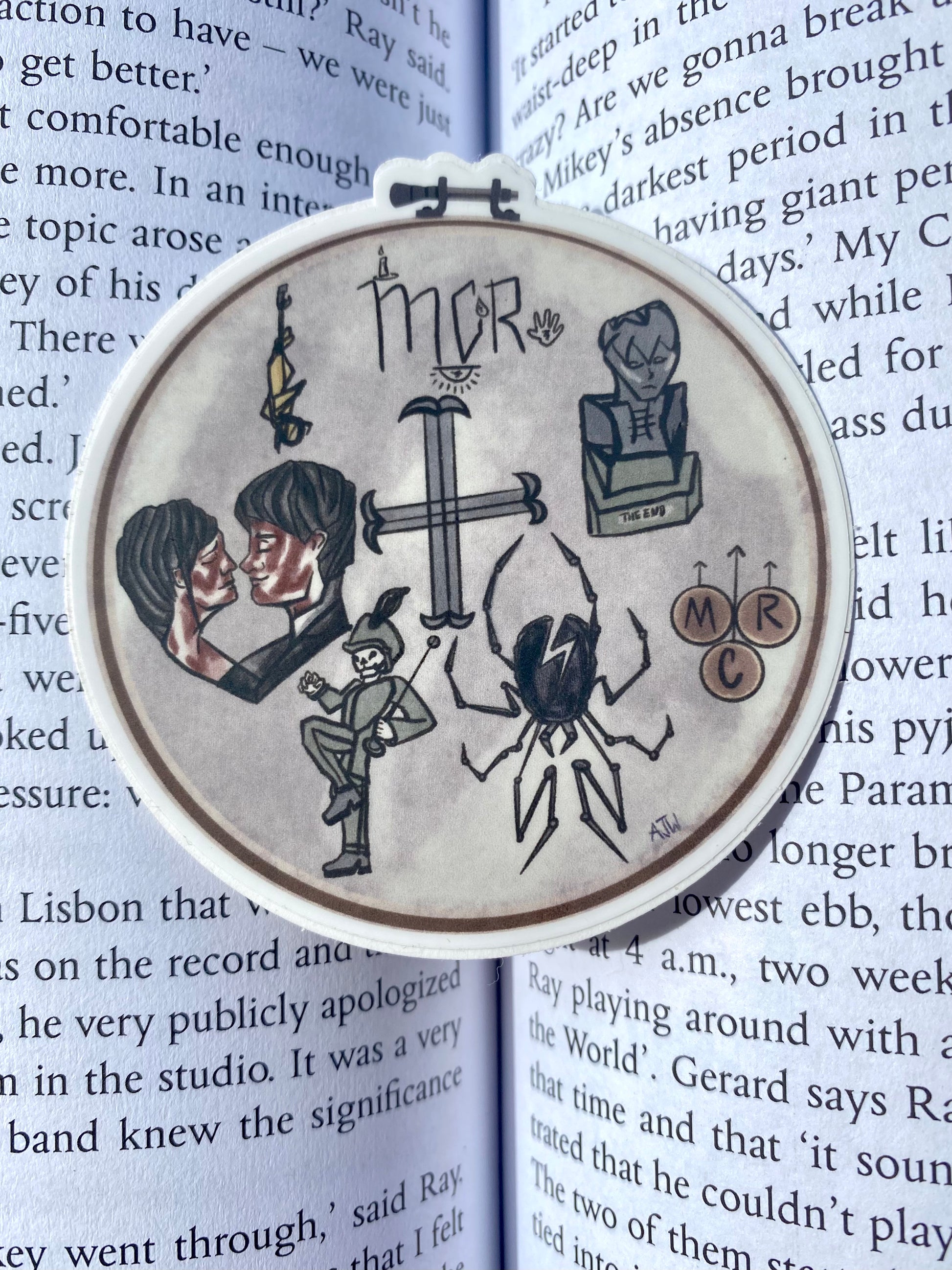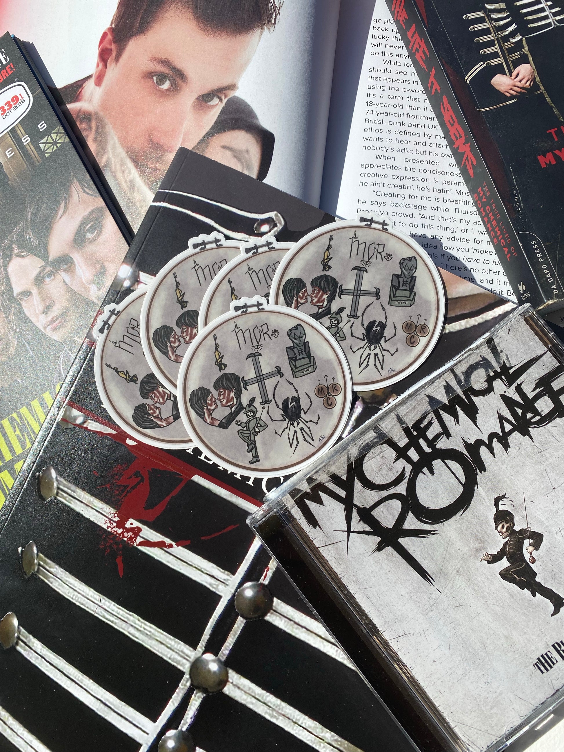 Treaded from an original Embroidered Stitched canvas; the Emo Band of Albums is inspired by the 3 guys from New Jersey & 1 guy from Chicago.